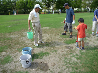 参加頂いた男子の皆さんで夏芝が無い地域への移植