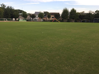 上の写真はグランド中央部分。1週間養生でも色付き復活しています。